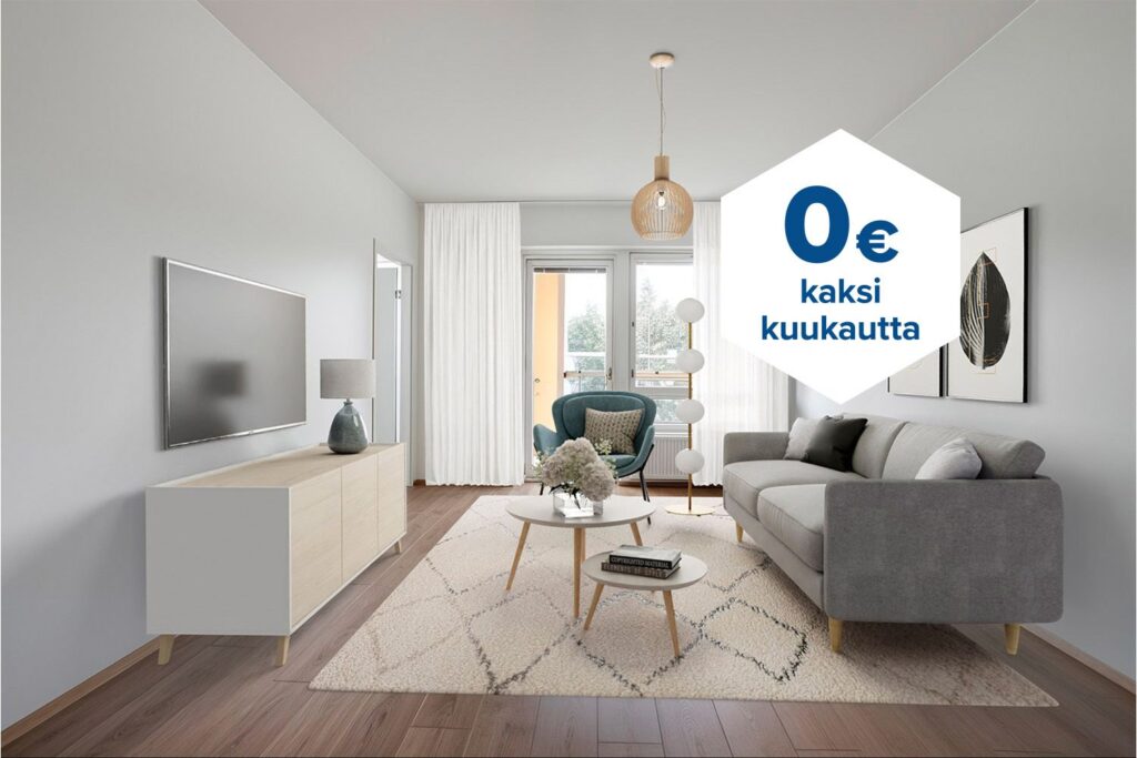 Tee sopimus nyt – saat kahden ensimmäisen kuukauden käyttövastikkeen hintaan 0 € ja vakuusmaksun 250 €. Edut ovat voimassa 15.4.2026 saakka ja koskevat vain vapaita asuntoja ja uusia asiakkaita. Vesi- ja autopaikkamaksut normaalisti. Edellyttää 12 kuukauden asumista.
