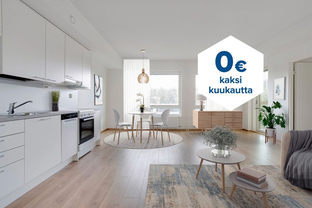 Tee sopimus nyt – saat kahden ensimmäisen kuukauden käyttövastikkeen hintaan 0 € ja vakuusmaksun 250 €. Edut ovat voimassa 15.4.2026 saakka ja koskevat vain vapaita asuntoja ja uusia asiakkaita. Vesi- ja autopaikkamaksut normaalisti. Edellyttää 12 kuukauden asumista.