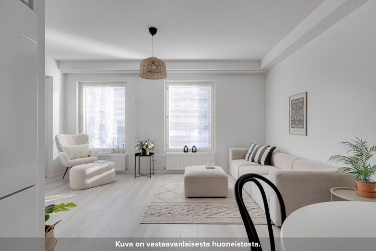 Tässä asunnossa on avara keittiö ja olohuone, josta käynti omalle lasitetulle parvekkeelle. Asunnossa on tilavat makuuhuoneet ja kylpyhuone, jossa tilavaraus pesutornille. Tämä huoneisto sopii täydellisesti niin perheille kuin pariskunnille, jotka arvostavat selkeyttä ja tehokasta tilankäyttöä. Sisäkuvat ovat kohteen toisesta vastaavasta asunnosta.