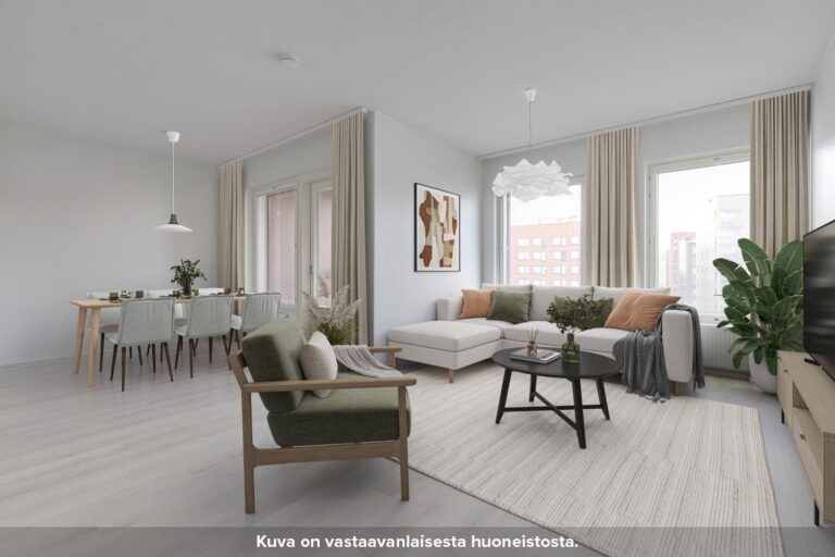 Tässä valoisassa kulmahuoneistossa on avara olohuone, kaunis keittiö sekä tilavat makuuhuoneet. Keittiöstä on käynti omalle lasitetulle parvekkeella, joka lisää asumismukavuutta vuoden ympäri. Modernissa kylpyhuoneessa on tilavaraus pesutornille sekä pyykkikaappi. Huoneiston selkeä pohjaratkaisu tukee helppoa ja viihtyisää asumista.