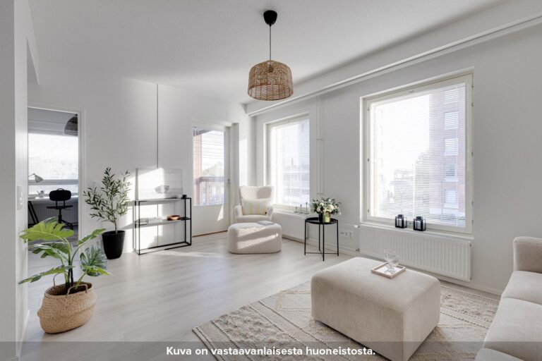 Tässä asunnossa on avara keittiö ja olohuone, josta käynti omalle lasitetulle parvekkeelle. Asunnossa on tilavat makuuhuoneet ja kylpyhuone, jossa tilavaraus pesutornille. Tämä huoneisto sopii täydellisesti niin perheille kuin pariskunnille, jotka arvostavat selkeyttä ja tehokasta tilankäyttöä