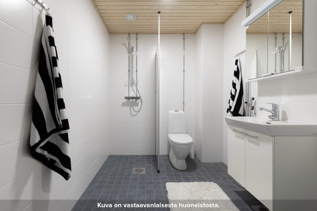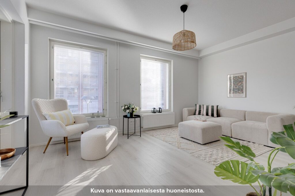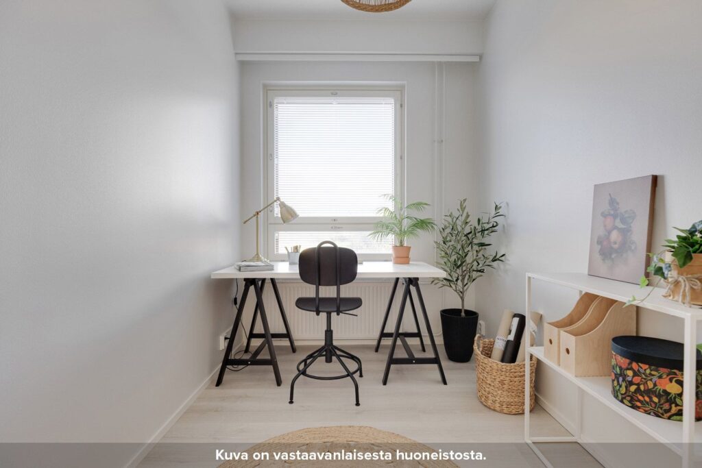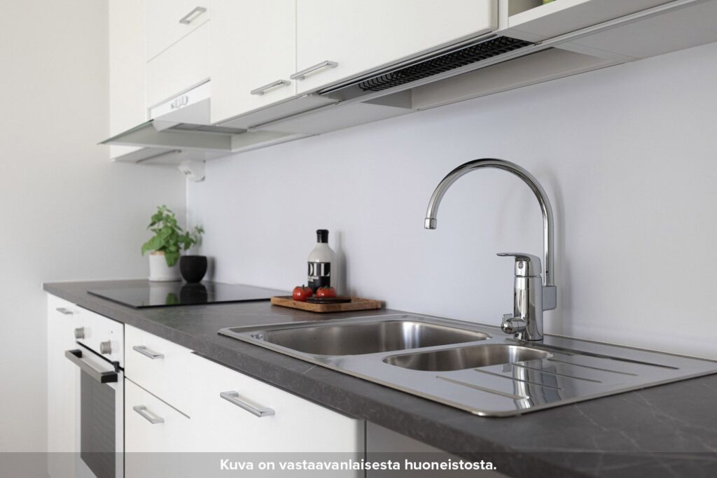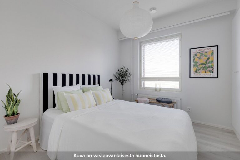 Tässä asunnossa on avara keittiö ja olohuone, josta käynti omalle lasitetulle parvekkeelle. Asunnossa on tilavat makuuhuoneet ja kylpyhuone, jossa tilavaraus pesutornille. Tämä huoneisto sopii täydellisesti niin perheille kuin pariskunnille, jotka arvostavat selkeyttä ja tehokasta tilankäyttöä. Sisäkuvat ovat kohteen toisesta vastaavanlaisesta asunnosta.