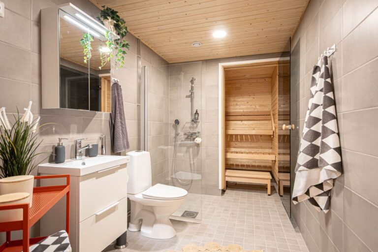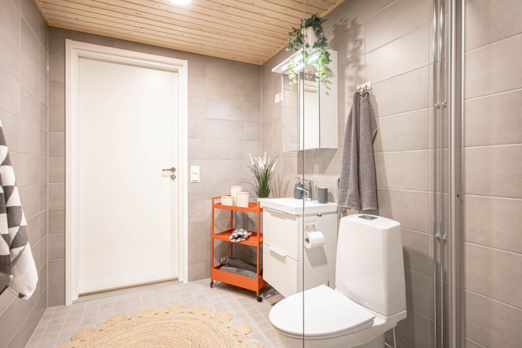 Makuuhuoneen yhteydessä on iso vaatehuone. Mukavankokoisessa kylpyhuoneessa on oma sauna sekä tilavaraus pyykinpesukoneelle ja pesutornille.