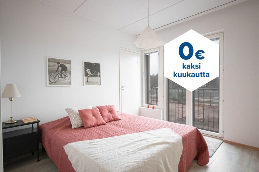 Tee sopimus nyt – saat kahden ensimmäisen kuukauden käyttövastikkeen hintaan 0 € ja vakuusmaksun 250 €. Edut ovat voimassa 15.4.2026 saakka ja koskevat vain uusia asiakkaita. Vesi- ja autopaikkamaksut normaalisti. Edellyttää 12 kuukauden asumista.