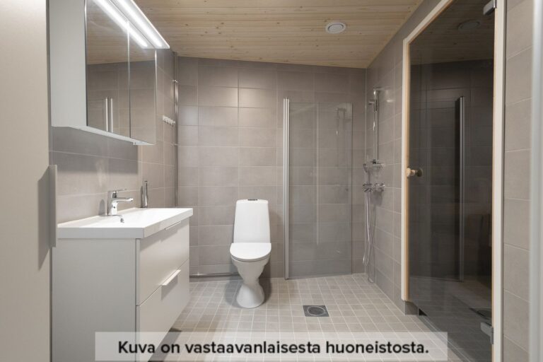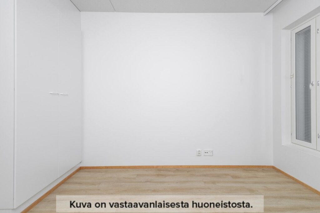 Tässä toisen kerroksen asunnossa on avara pohjaratkaisu, ja valoa tulee kahdesta ilmansuunnasta. Keittiö ja olohuone ovat yhtenäistä tilaa, ja keittiössä on valmiina astianpesukone. Toisen makuuhuoneen yhteydessä on vaatehuone, toisessa kaapistot. Asuintilojen lattiat ovat laminaattia, ja kylpyhuone on laatoitettu. Kylpyhuoneessa on tilavaraus pyykinpesukoneelle ja pesutornille.