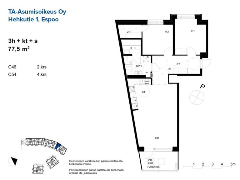 - Asumisoikeusasuntoja kahdessa viisikerroksisessa ja yhdessä seitsemänkerroksisessa talossa. Asunnot valmistuivat lokakuussa 2025.