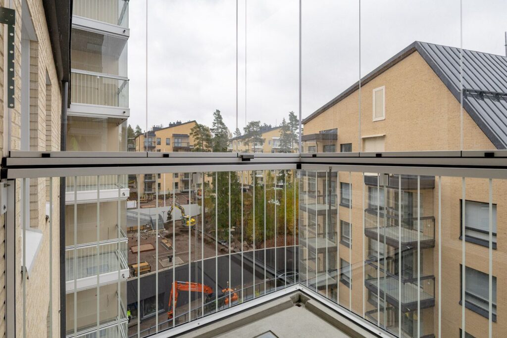 UUDISKOHDE. Saunallinen viidennen kerroksen mukavankokoinen kaksio, jossa on lasitettu parveke. Selkeäpohjainen asunto on helppo sisustaa mieleisekseen. Keittiö on olohuoneen yhteydessä omassa kulmauksessaan, ja siellä on jääkaappipakastin, keraaminen liesi, astianpesukone sekä tilavaraus mikrolle. Kylpyhuoneessa on oma sauna sekä tilavaraus pyykinpesukoneelle ja pesutornille. Asuintilojen lattiat ovat laminaattia, ja kylpyhuone sekä erillinen wc on laatoitettu.