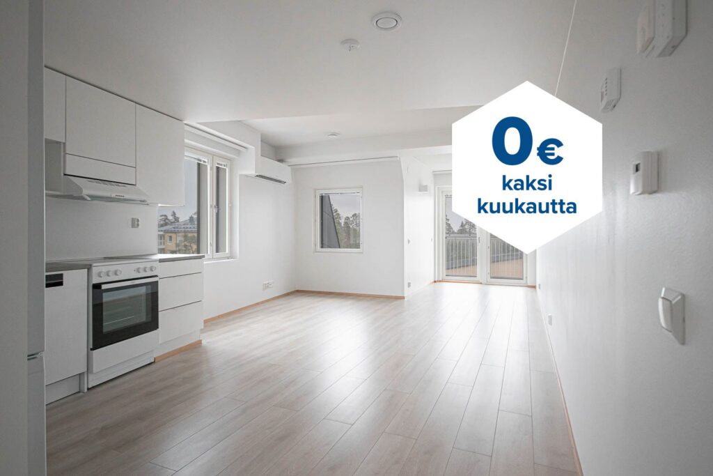 Tee sopimus nyt – saat kahden ensimmäisen kuukauden käyttövastikkeen hintaan 0 € ja vakuusmaksun 250 €. Edut ovat voimassa 15.4.2026 saakka ja koskevat vain uusia asiakkaita. Vesi- ja autopaikkamaksut normaalisti. Edellyttää 12 kuukauden asumista.