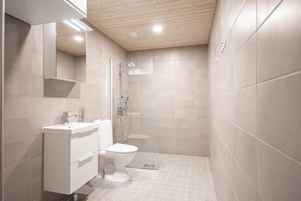 · Kylpyhuoneessa moderni laatoitus, sekä tilavaraus pyykinpesukoneelle