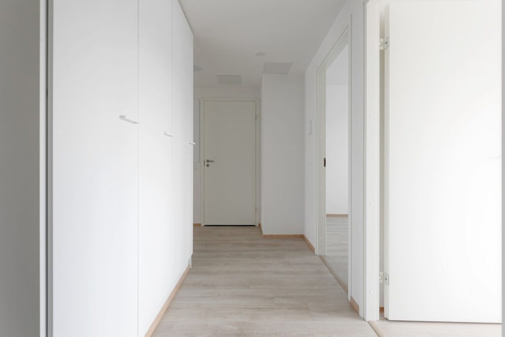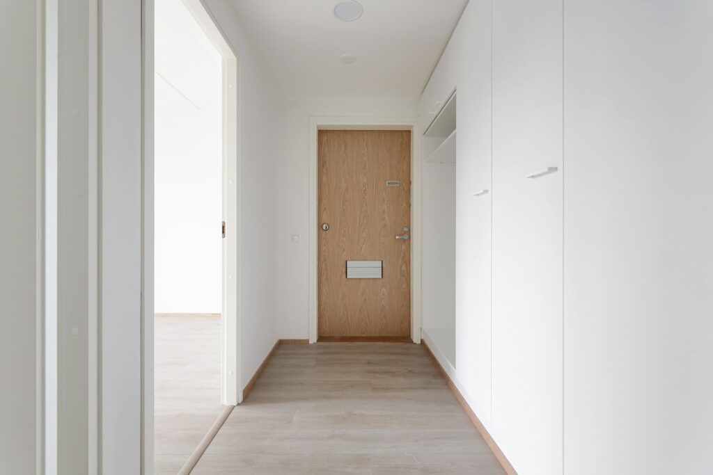 Tässä toisen kerroksen asunnossa on avara pohjaratkaisu, ja valoa tulee kahdesta ilmansuunnasta. Keittiö ja olohuone ovat yhtenäistä tilaa, ja keittiössä on valmiina astianpesukone. Molempien makuuhuoneiden yhteydessä on vaatehuoneet. Asuintilojen lattiat ovat laminaattia, ja kylpyhuone on laatoitettu. Kylpyhuoneessa on tilavaraus pyykinpesukoneelle ja pesutornille.