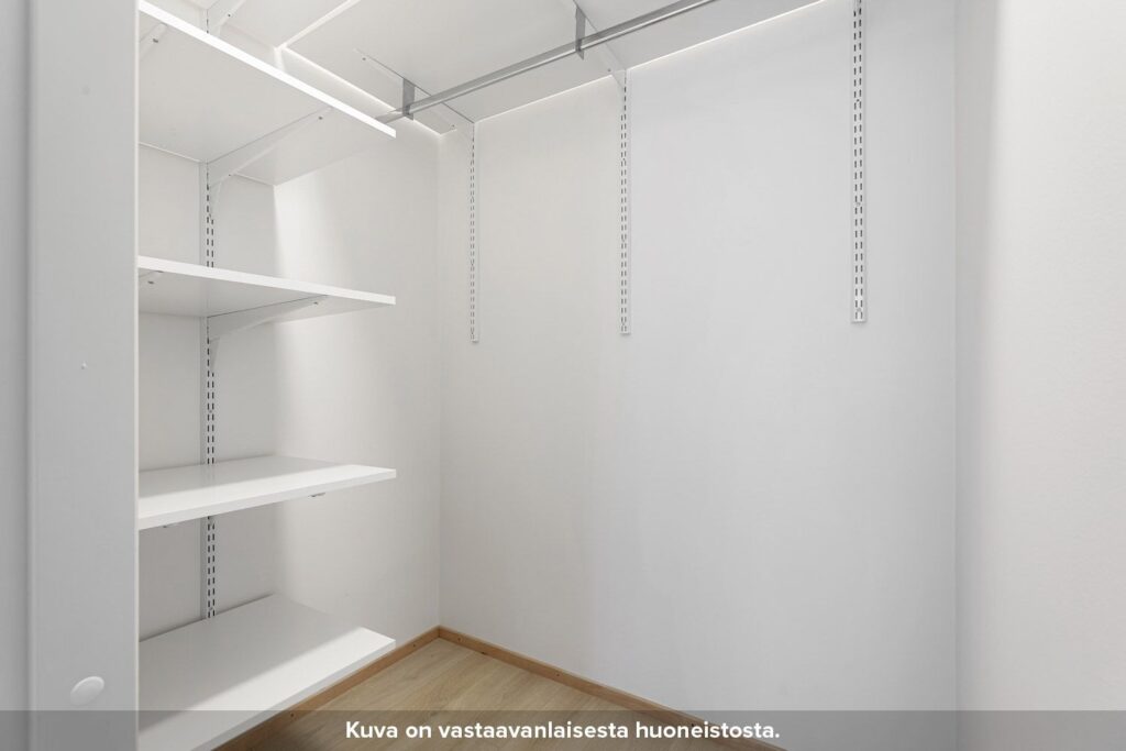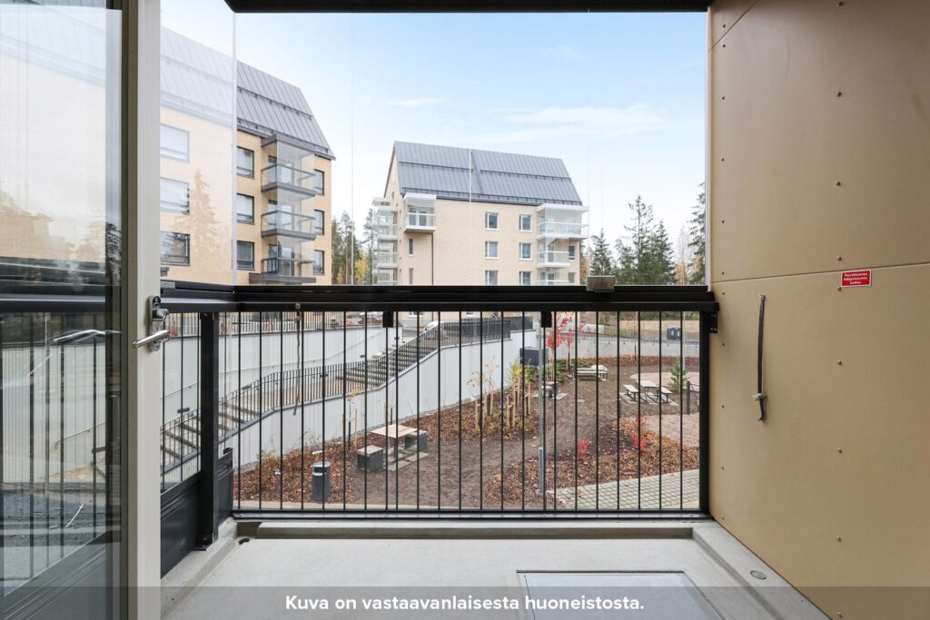 Asunnossa on toimiva ja avara pohjaratkaisu. Keittiö on olohuoneen kanssa yhtenäistä tilaa. Makuuhuone on tilava ja sen yhteydestä löytyy hyvin säilytystilaa sisältävä vaatehuone. Olohuoneen yhteydestä on kulku lasitetulle parvekkeelle, joka toimii lisähuoneena alkukeväästä myöhäiseen syksyyn. Keittiössä on valmiina astianpesukone ja kylpyhuoneessa on tilavaraus pyykinpesukoneelle ja pesutornille.