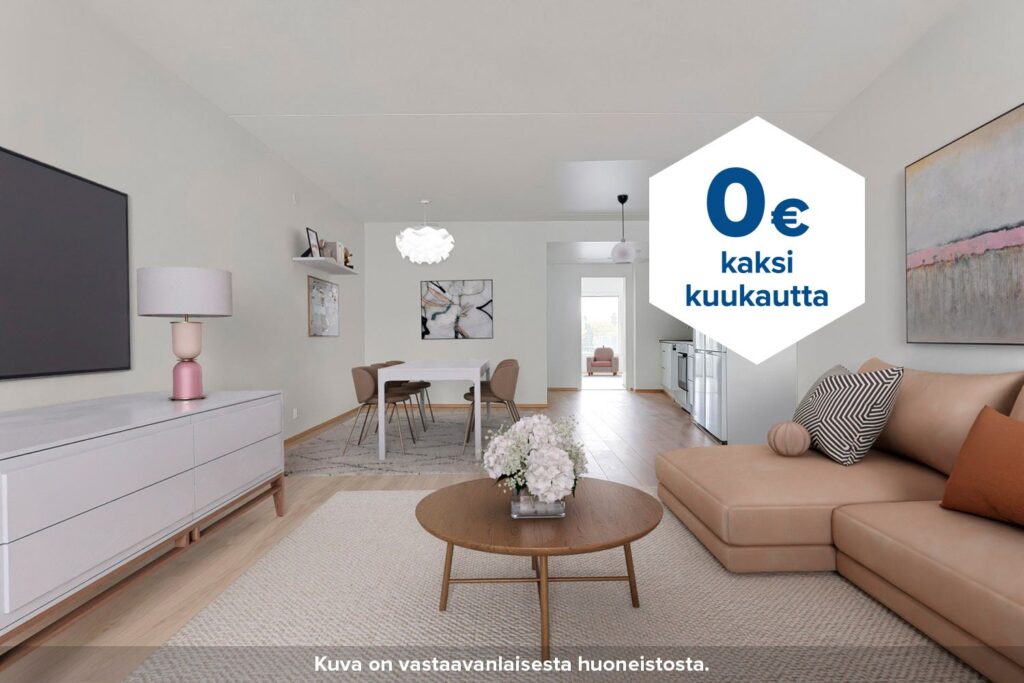 Tee sopimus nyt – saat kahden ensimmäisen kuukauden käyttövastikkeen hintaan 0 € ja vakuusmaksun 250 €. Edut ovat voimassa 15.4.2026 saakka ja koskevat vain uusia asiakkaita. Vesi- ja autopaikkamaksut normaalisti. Edellyttää 12 kuukauden asumista.