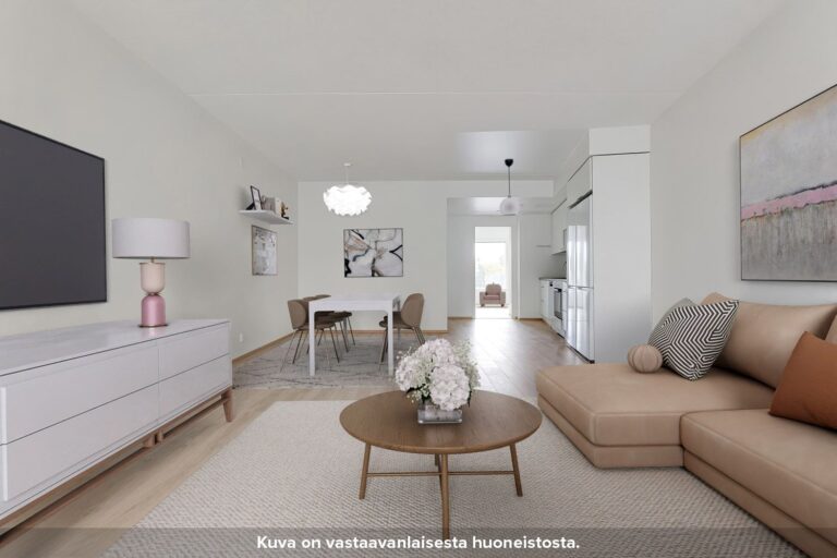 Saunallinen viidennen kerroksen neljän huoneen perheasunto. Läpitalon asunnossa on toimiva ja avara pohjaratkaisu. Keittiö on olohuoneen kanssa yhtenäistä tilaa. Makuhuoneet ovat tilavia ja niiden yhteydestä löytyy hyvin kaappitilaa. Olohuoneen yhteydestä on kulku lasitetulle parvekkeelle, joka toimii lisähuoneena alkukeväästä myöhäiseen syksyyn. Arkea helpottaa erillis-wc. Keittiössä on valmiina astianpesukone ja erillisessä wc:ssä on tilavaraus pyykinpesukoneelle ja pesutornille.
