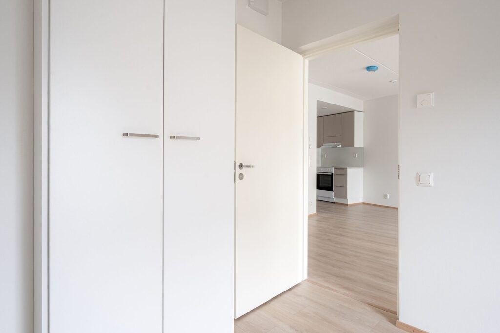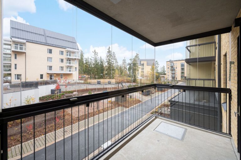 Tässä toisen kerroksen asunnossa on toimiva pohjaratkaisu, ja valoa asuntoon tulee kahdesta ilmansuunnasta. Keittiö avautuu olohuoneeseen, jossa on tilaa niin ruokailulle kuin oleskelullekin. Olohuoneesta on kulku lasitetulle parvekkeelle, joka toimii lisähuoneena alkukeväästä myöhäiseen syksyyn.