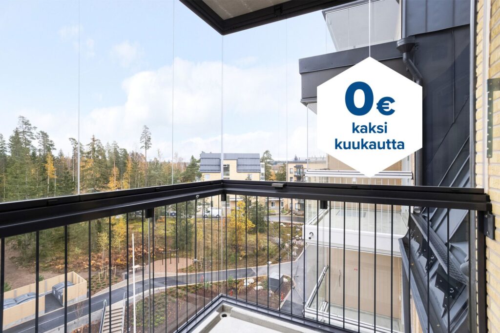 Tee sopimus nyt – saat kahden ensimmäisen kuukauden käyttövastikkeen hintaan 0 € ja vakuusmaksun 250 €. Edut ovat voimassa 15.4.2026 saakka ja koskevat vain uusia asiakkaita. Vesi- ja autopaikkamaksut normaalisti. Edellyttää 12 kuukauden asumista.
