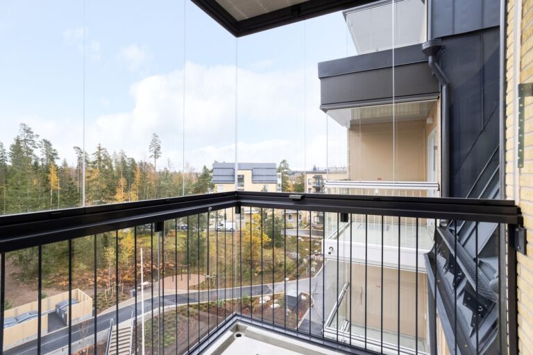 Kuudennen kerroksen läpitalon kolmio. Asunnossa on avara ja toimiva pohjaratkaisu. Keittiö on olohuoneen kanssa yhtenäistä tilaa. Makuuhuoneet ovat tilavia, ja toisen niistä yhteydessä on vaatehuone, toisen yhteydessä kaapistot. Olohuoneesta on kulku lasitetulle parvekkeelle, joka toimii lisähuoneena alkukeväästä myöhäiseen syksyyn. Keittiössä on valmiina astianpesukone, ja kylpyhuoneessa on tilavaraukset pyykinpesukoneelle/pesutornille. Oman saunavuoron voi halutessaan varata viihtyisästä talosaunasta.