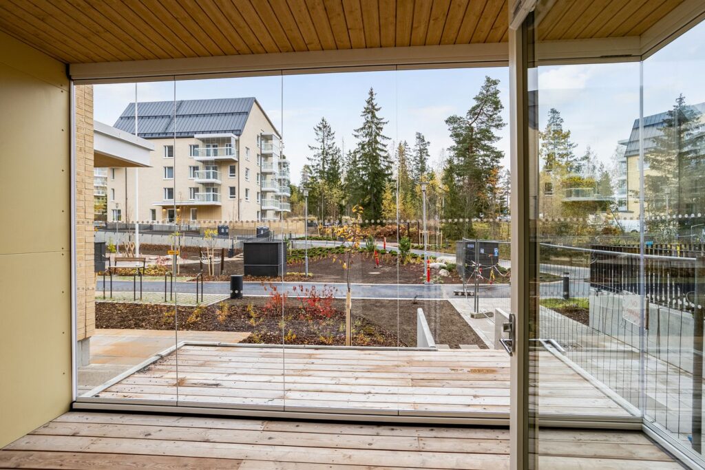 - Asukkaiden käytettävissä on kerhotiloja, pesula, kuivaushuoneita, talosaunoja sekä monipuolinen piha-alue, jossa on leikkipaikka ja kuntoiluvälineitä kaikenikäisille.