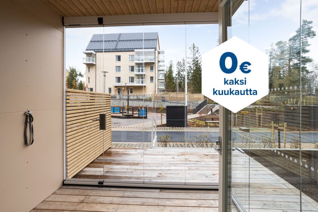 Tee sopimus nyt – saat kahden ensimmäisen kuukauden käyttövastikkeen hintaan 0 € ja vakuusmaksun 250 €. Edut ovat voimassa 15.4.2026 saakka ja koskevat vain uusia asiakkaita. Vesi- ja autopaikkamaksut normaalisti. Edellyttää 12 kuukauden asumista.