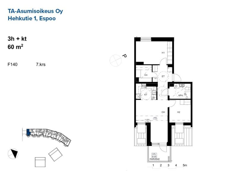 Seitsemännen kerroksen läpitalon kolmio uudessa asumisoikeustalossa!