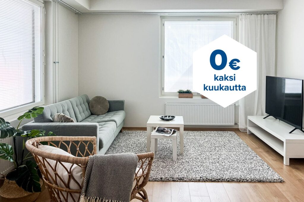 Tee sopimus nyt – saat kahden ensimmäisen kuukauden käyttövastikkeen hintaan 0 € ja vakuusmaksun 250 €. Edut ovat voimassa 15.4.2026 saakka ja koskevat vain uusia asiakkaita. Vesi- ja autopaikkamaksut normaalisti. Edellyttää 12 kuukauden asumista.