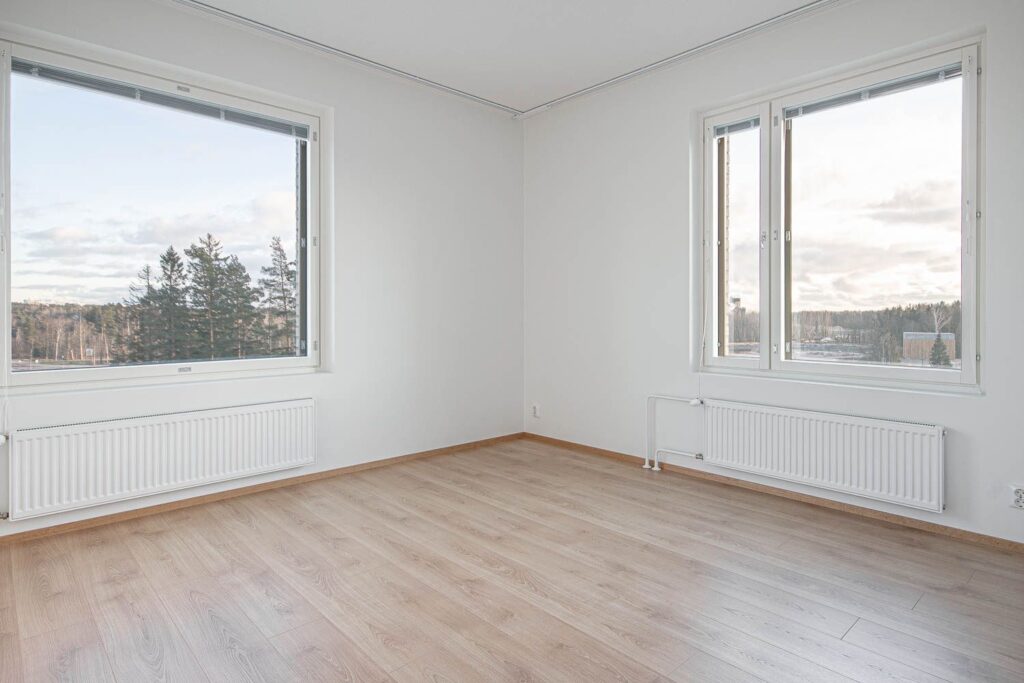 Viidennen kerroksen avarapohjainen neljän huoneen asunto, jossa on tilaa isommallekin perheelle. Tähän kulmahuoneistoon tulee valoa kahdesta ilmansuunnasta. Keittiö ja olohuone ovat yhtenäistä tilaa, jonka yhteydessä on myös asunnon lasitettu parveke. Keittiössä on valmiina astianpesukone, keraaminen liesi, kaksi jääkaappipakastinta sekä tilavaraus mikrolle. Makuuhuoneet sijaitsevat asunnon kulmissa, ja niissä on säilytystilaa kaapistoissa. Asumismukavuutta lisäävät erillis-wc kylpyhuoneen lisäksi sekä sälekaihtimet ikkunoissa. Kylpyhuoneessa on tilavaraus pyykinpesukoneelle ja kuivausrummulle sekä säilytystilaa allas- ja peilikaapeissa. Saunavuoron voi halutessaan varata yhteisestä talosaunasta.