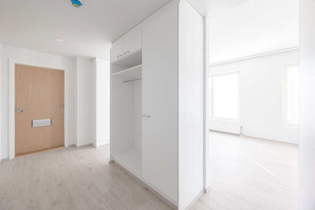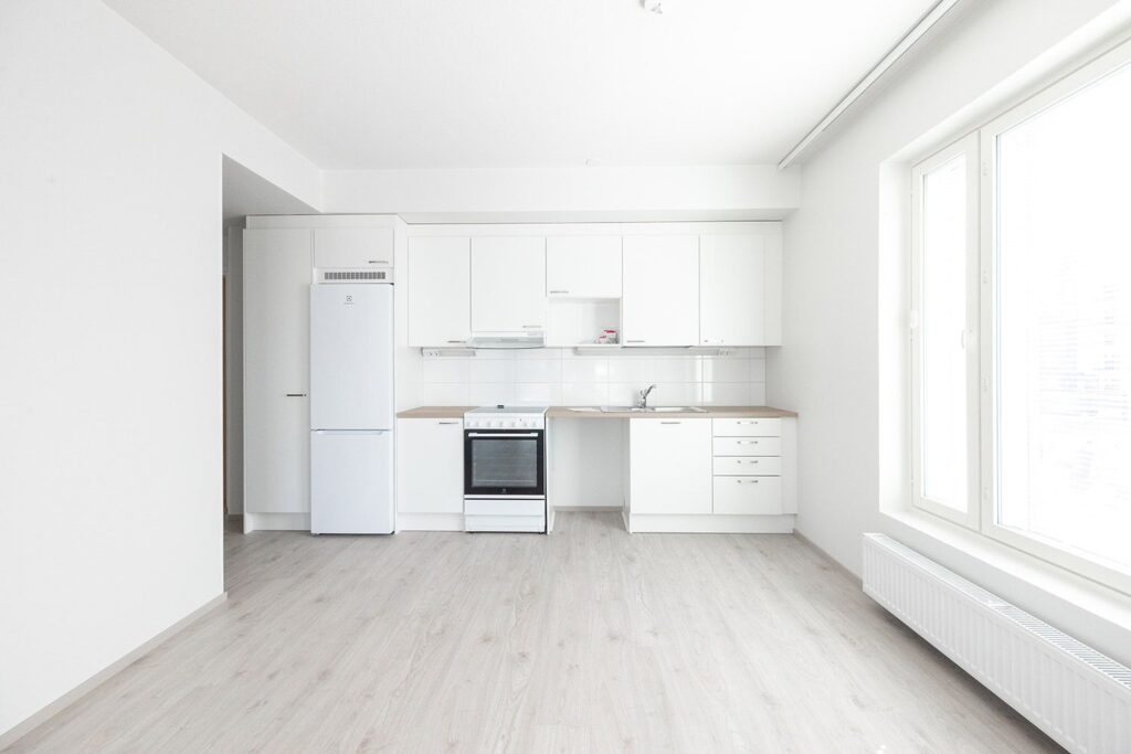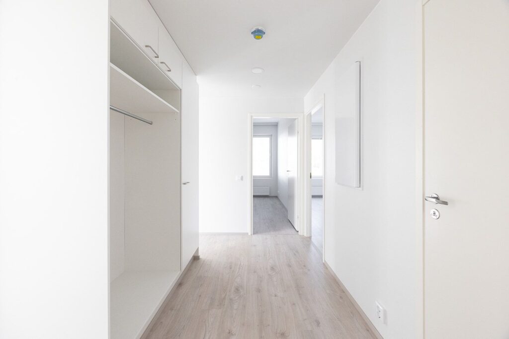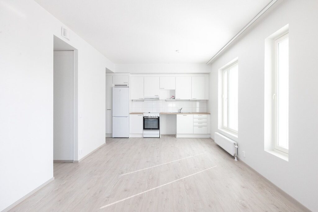 Tämän asunnon keittotila ja olohuone ovat yhtä avaraa tilaa, keittiöstä löytyy tilavaraus astianpesukoneelle sekä mikroaaltouunille. Säilytystilaa tuo päämakuuhuoneen yhteydessä oleva vaatehuone. Lasitettu parveke suuntaa länteen, ikkunat länteen ja etelään. Tälle asunnolle on varattavissa pysäköintipaikka. Asunto A6 (2.krs): asumisoikeusmaksu 38 884 € ja vastike 913 €/kk. Asuntoon on jatkuva haku.