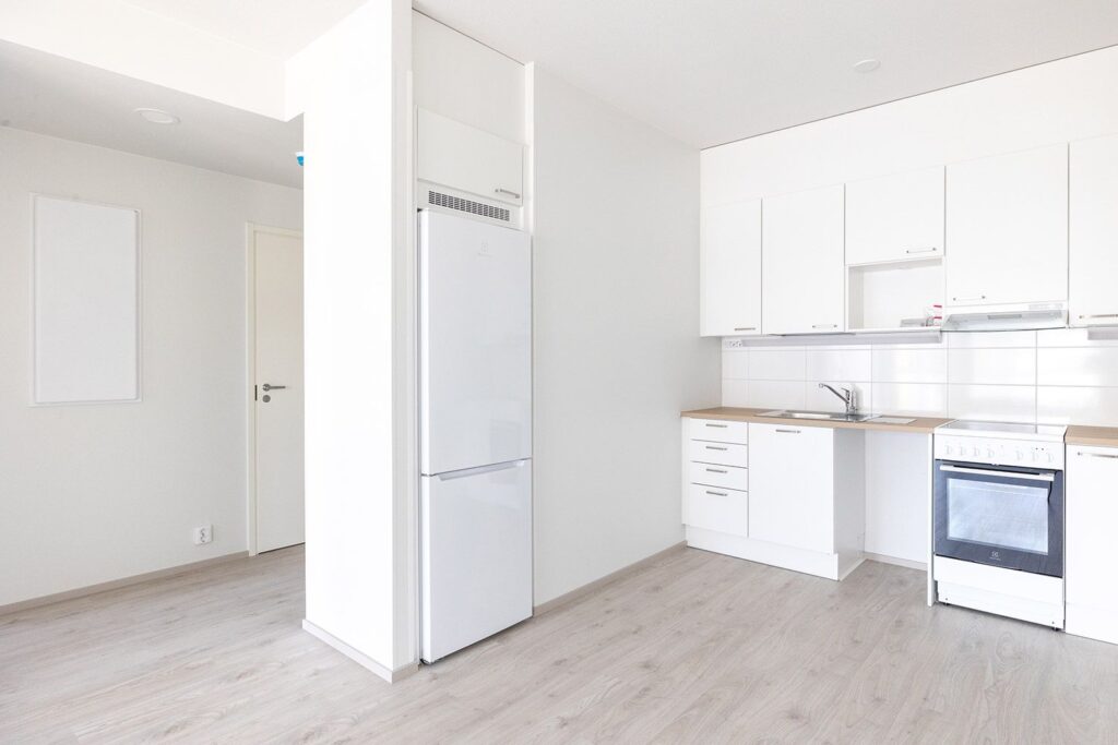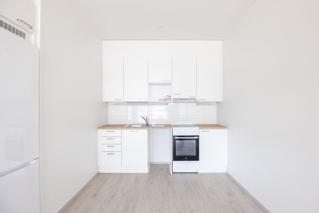 Toimivapohjainen kaksio, jonka keittotila ja olohuone ovat yhtä avaraa tilaa. Keittiöstä löytyy tilavaraus astianpesukoneelle sekä mikroaaltouunille. Säilytystilaa tuo makuuhuoneen yhteydessä oleva vaatehuone. Lasitettu parveke, sekä ikkunat suuntaavat länteen. Asunto A27 (6.krs): asumisoikeusmaksu: 31 167 € ja vastike 732 €/kk. Asuntoon on jatkuva haku.