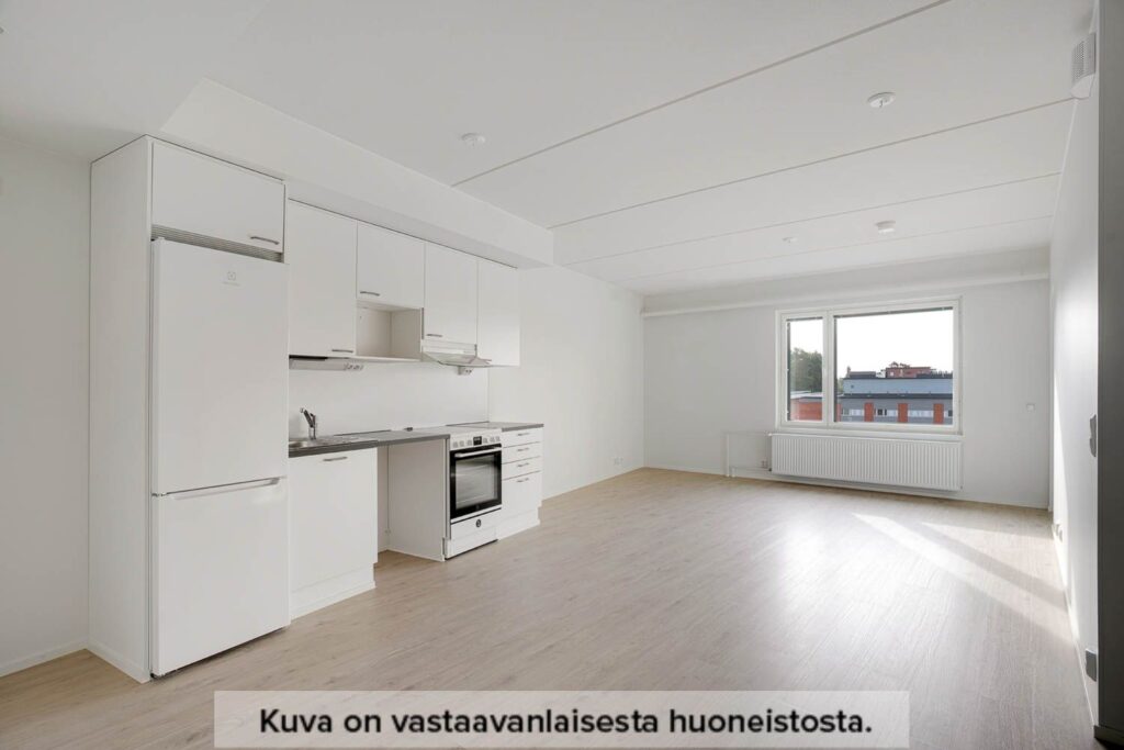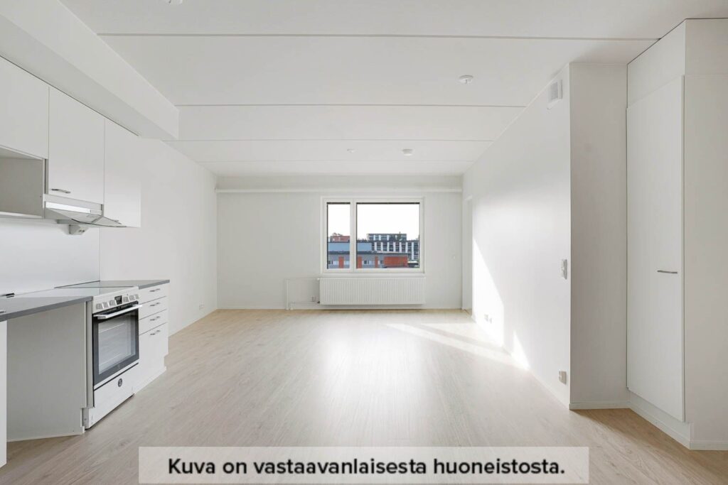 Kolmannen kerroksen kaksio sijaitsee C-rapussa. Avara pohjaratkaisu, jossa olohuone ja keittiö ovat yhtenäistä tilaa. Lasitettu parveke.