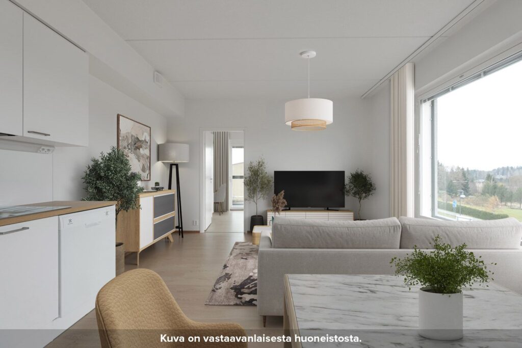 Keittiö on kätevästi sijoitettu olohuoneen yhteyteen, luoden toimivan tilan arjen askareille. Keittiöstä löytyy valmiina astianpesukone, keraaminen liesi ja jääkaappipakastin. Makuuhuoneesta pääsee tilavaan, luoteeseen suuntautuvaan parvekkeeseen.