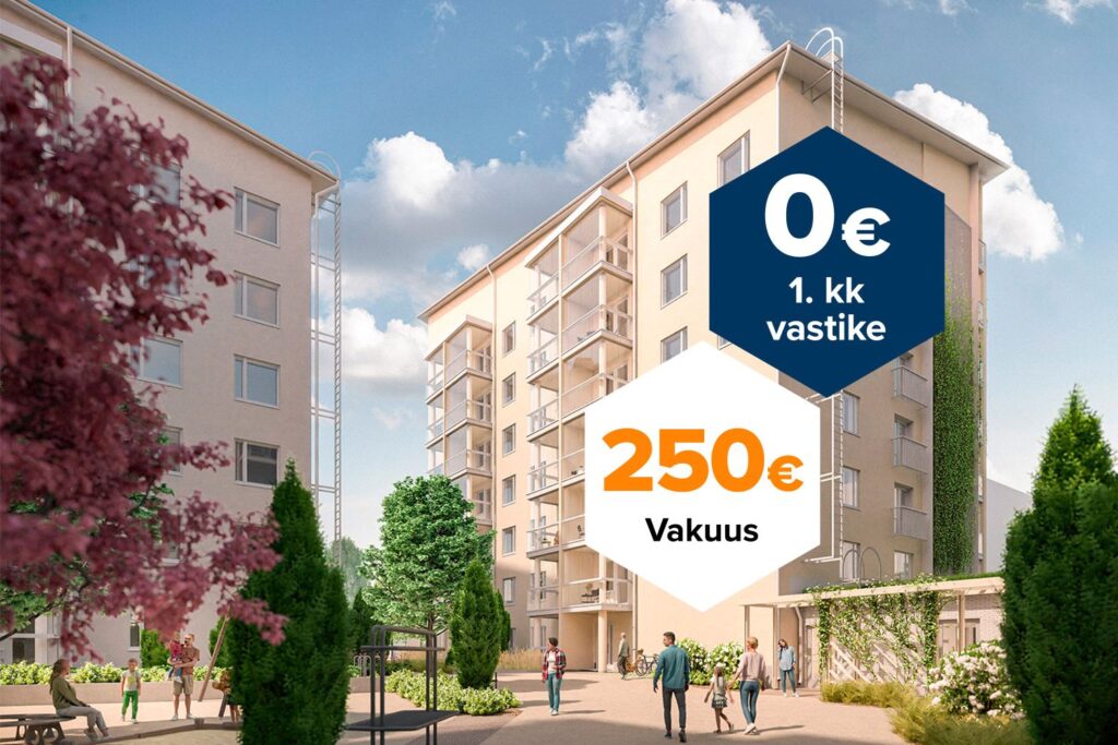 Tee sopimus nyt – saat ensimmäisen kuukauden vastikkeen hintaan 0 €. Vakuusmaksu vain 250 euroa.