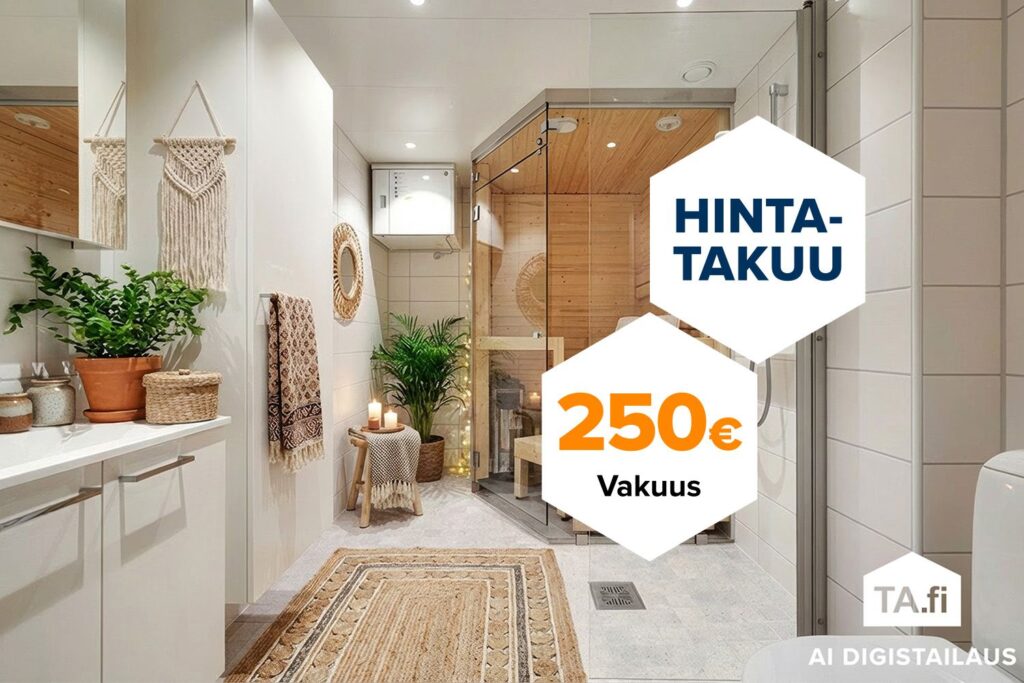 Moderni ja valoisa päätykolmio, joka tarjoaa erinomaisen pohjaratkaisun ja runsaasti luonnonvaloa. Olohuone ja keittiö muodostavat avaran yhtenäisen tilan, josta on käynti lasitetulle parvekkeelle. Keittiössä on laadukas Puustellin kalustus sekä modernit kodinkoneet: keraaminen liesitaso ja uuni, jääkaappipakastin ja tilavaraus astianpesukoneelle ja mikrolle. Asunnossa on kaksi avaraa makuuhuonetta, moderni kylpyhuone sekä oma sauna kirkkailla lasiseinillä.