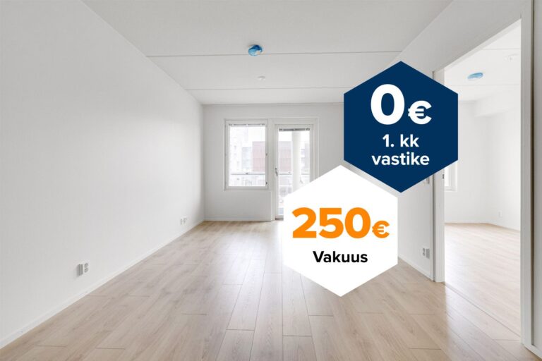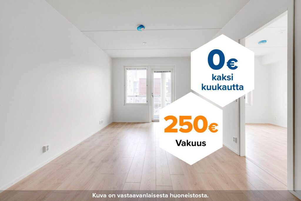 Tee sopimus nyt – saat kahden ensimmäisen kuukauden käyttövastikkeet hintaan 0 € ja vakuusmaksun 250 €. Etu voimassa 15.4.2026 saakka ja koskee vain uusia asiakkaita. Vesi- ja autopaikkamaksut normaalisti. Edellyttää 12 kk asumista.