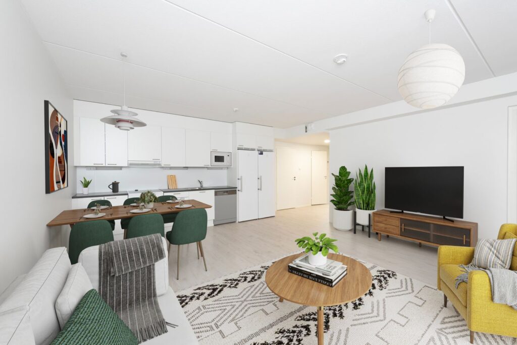 Ensimmäisessä kerroksessa sijaitseva tilava 81,5 m² koti tarjoaa helppoa arkea. Avara yhtenäinen olohuone ja keittiötila muodostavat viihtyisän oleskelutilan, jossa on tilaa yhdessäoloon. Kahden makuuhuoneen pohjaratkaisu antaa mahdollisuuksia niin perheelle kuin kotitoimistoa kaipaavalle. Oman saunan löylyt kutsuvat rentoutumaan ja erillinen WC sekä käytännöllinen kylpyhuone tekevät arjesta sujuvaa.
