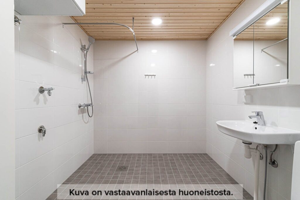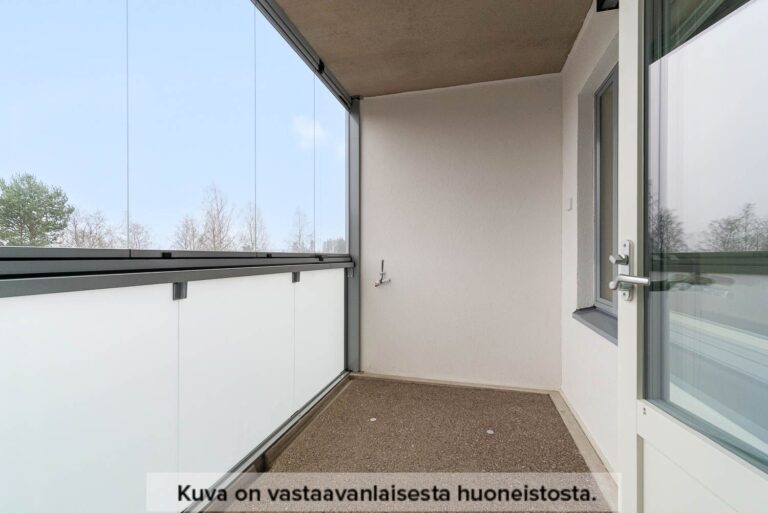 Lasitettu parveke jatkaa oleskelutilaa ja toimii viihtyisänä paikkana rentoutumiseen ympäri vuoden. Tilava kylpyhuone lisää arjen sujuvuutta ja asumismukavuutta.