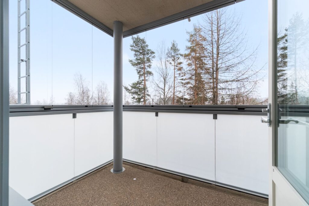 Lasitettu parveke toimii viihtyisänä lisätilana ympäri vuoden ja tarjoaa paikan rentoutumiseen vuodenajasta riippumatta.