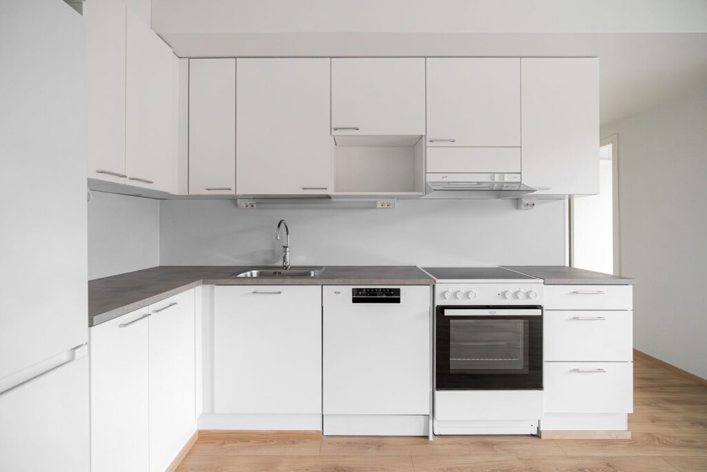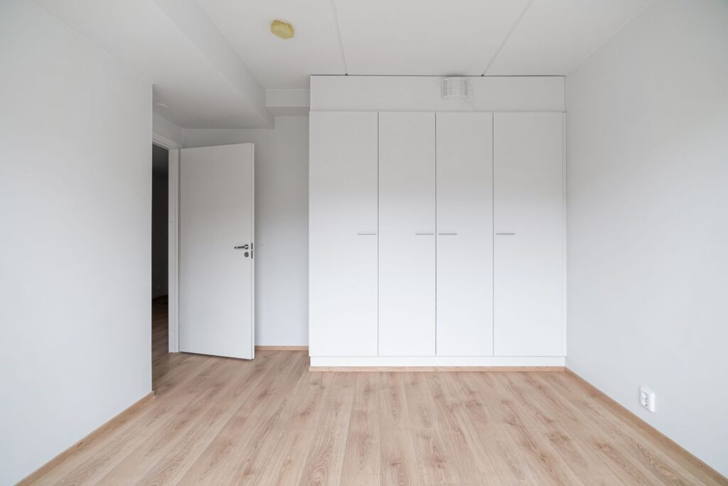 Kylpyhuone on laatoitettu ja varustettu liitännöillä pesukoneelle ja kuivausrummulle. Muualla asunnossa on laminaattilattia. Säilytystilaa on makuuhuoneiden sekä eteisen kaapistoissa. Kylpyhuoneessa on lisäksi allas-, peili- ja pyykkikaapit.