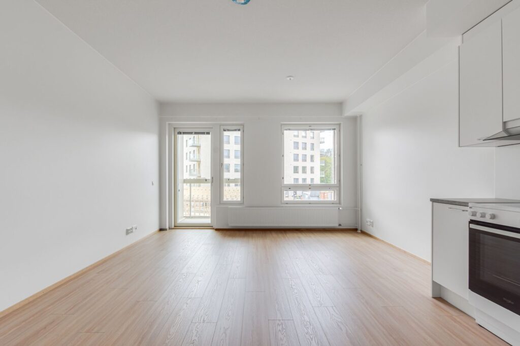 Tässä viidennen kerroksen yksiössä on avara pohjaratkaisu, joka mahdollistaa kalusteiden sijoittelun monipuolisesti. Asunnossa on lounaan suuntaan avautuva lasitettu parveke, joka tarjoaa lisätilaa oleskeluun lämpiminä vuodenaikoina. Käytännöllisessä keittiössä on keraaminen liesi, jääkaappipakastin sekä tilavaraukset astianpesukoneelle ja mikroaaltouunille. Tilava ja kokonaan laatoitettu kylpyhuone on varustettu liitännöillä sekä pyykinpesukoneelle että kuivausrummulle. Säilytystilaa on eteisen kaapistoissa, ja ikkunoissa on valmiina sälekaihtimet.