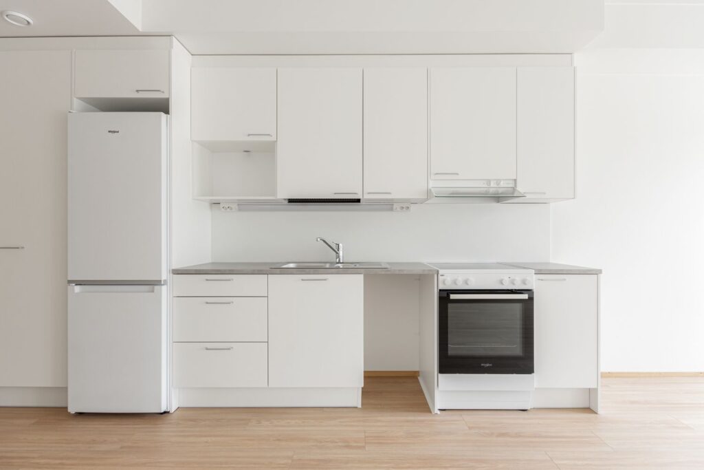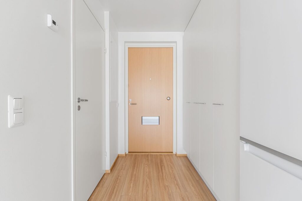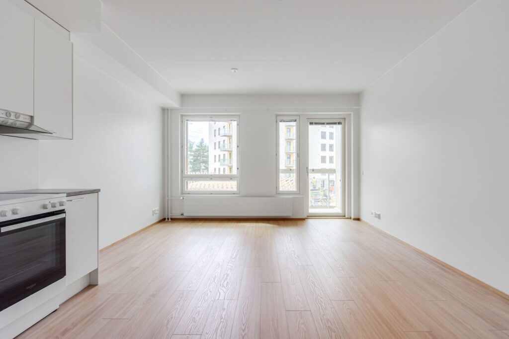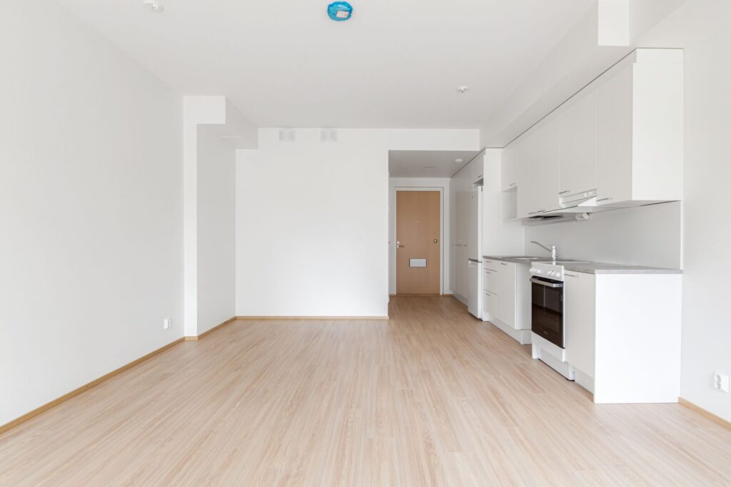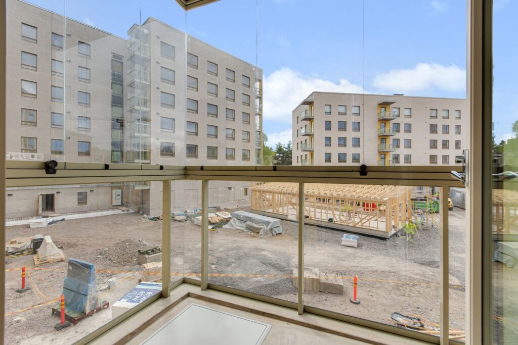 Tässä ylimmän, seitsemännen kerroksen yksiössä on avara pohjaratkaisu, joka mahdollistaa kalusteiden sijoittelun monipuolisesti. Asunnossa on lounaan suuntaan avautuva lasitettu parveke, joka tarjoaa lisätilaa oleskeluun lämpiminä vuodenaikoina. Käytännöllisessä keittiössä on keraaminen liesi, jääkaappipakastin sekä tilavaraukset astianpesukoneelle ja mikroaaltouunille. Tilava ja kokonaan laatoitettu kylpyhuone on varustettu liitännöillä sekä pyykinpesukoneelle että kuivausrummulle. Säilytystilaa on eteisen kaapistoissa, ja ikkunoissa on valmiina sälekaihtimet.