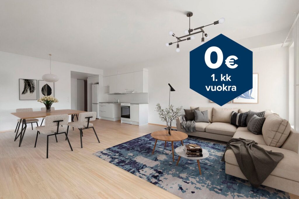Toisen kerroksen 90 m²:n läpitalon asunnossa on kolme makuuhuonetta, alkovi sekä avara olohuone-keittiö. Asuintilat jatkuvat lasitetulle eteläparvekkeelle. Asunnossa on laminaattilattiat ja sälekaihtimet, jotka viimeistelevät huoneiden ilmeen. Keittiöstä löytyy keraaminen liesi, jääkaappipakastin sekä varaukset astianpesukoneelle ja mikrolle. Arkea helpottaa erillinen wc sekä laatoitettu kylpyhuone, jossa on liitännät pyykinpesukoneelle ja kuivausrummulle.