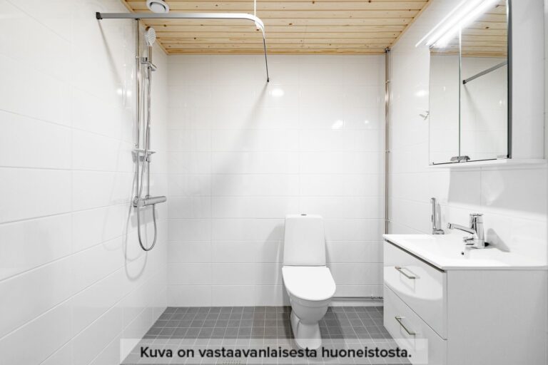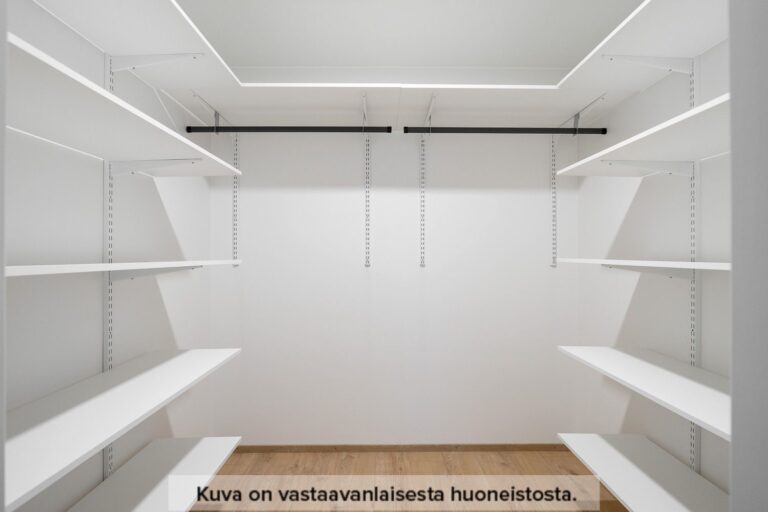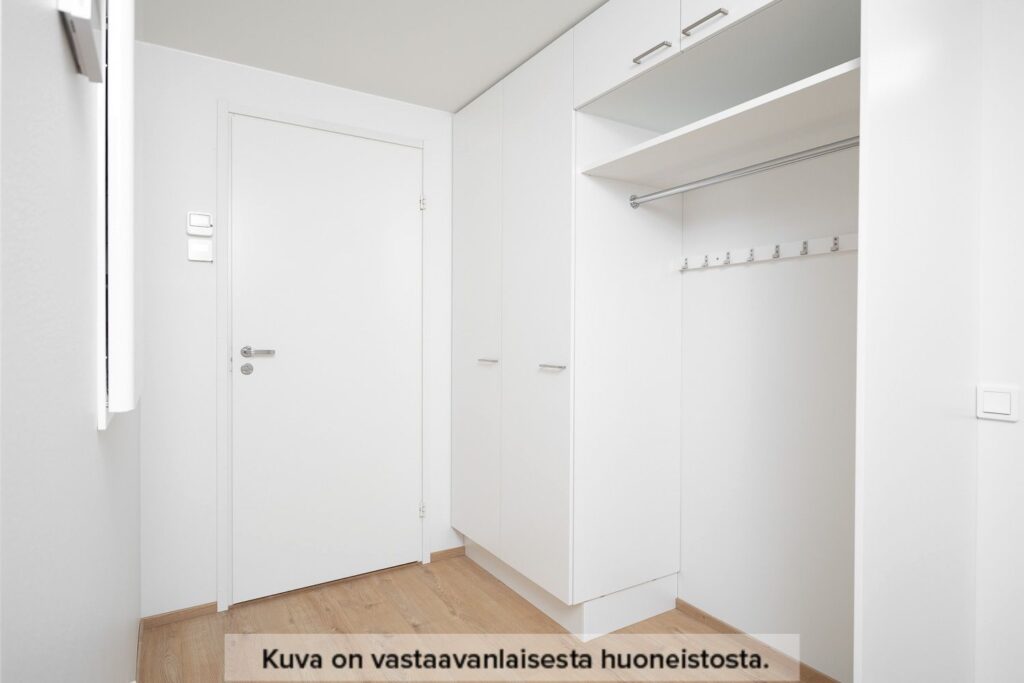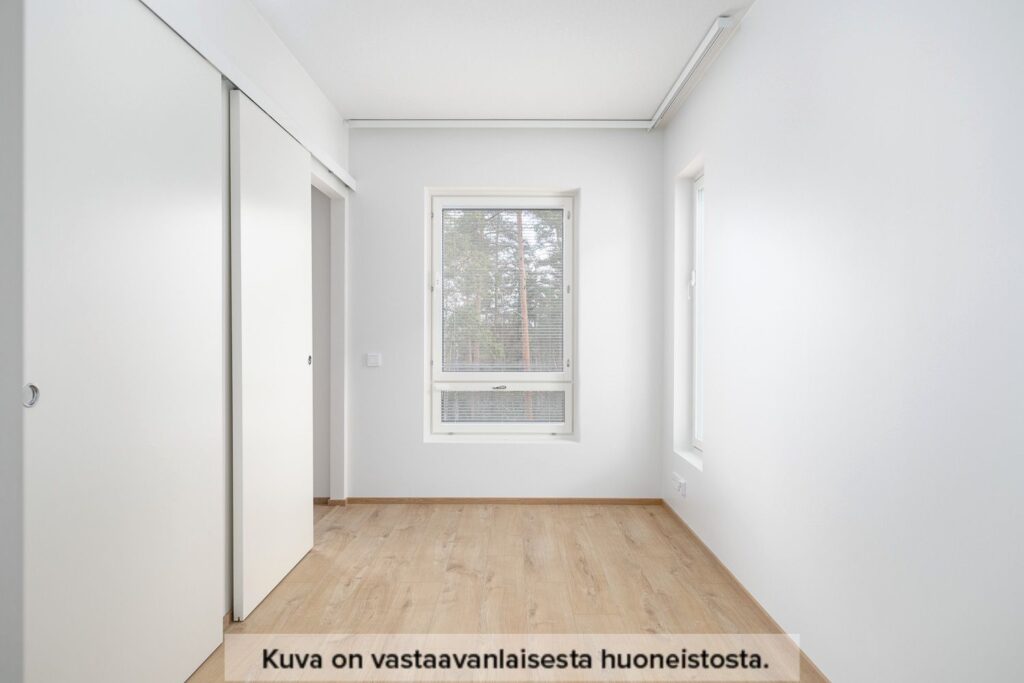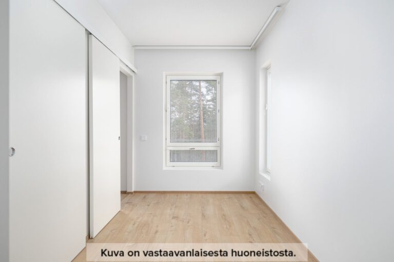 Laatoitetussa kylpyhuoneessa on peili- ja allaskaappi sekä tilavaraus pesutornille. Makuuhuoneessa on iso vaatehuone, ja säilytystilaa löytyy myös eteisestä. Laminaattilattiat ja valmiiksi asennetut sälekaihtimet viimeistelevät asumismukavuuden.