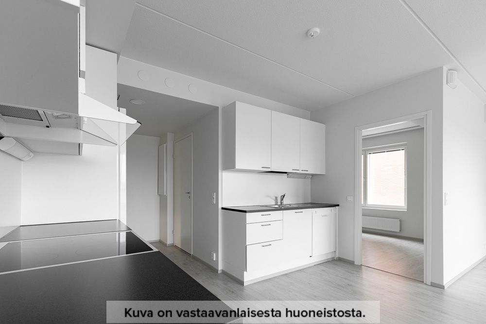 Laatoitetussa kylpyhuoneessa on tilavaraus pesutornille. Muualla asunnossa on laminaattilattiat sekä sälekaihtimet. Säilytystilaa löytyy makuuhuoneen ja eteisen kaapistoista, ja lasitettu parveke tuo lisätilaa ympäri vuoden.