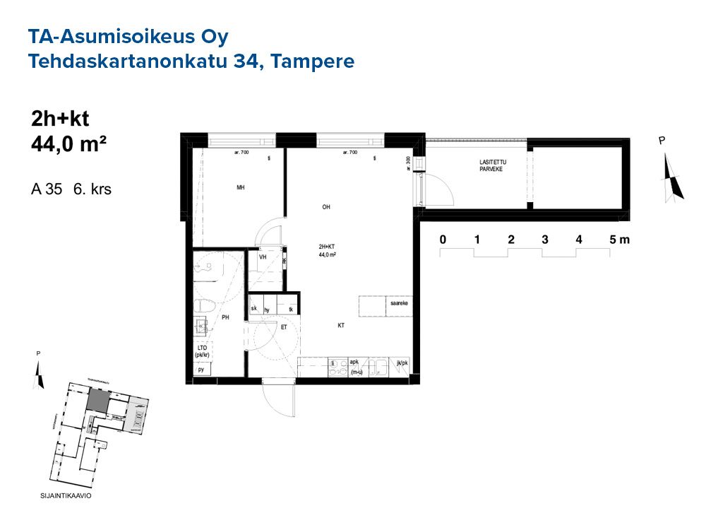 Tämä ainutlaatuinen kaksio talon ylemmässä osassa tarjoaa avaran ja yhtenäisen olohuoneen sekä keittiön, jossa on käytännöllinen ja tilava niemeke – täydellinen niin ruoanlaittoon kuin seurusteluun. Eteisessä on kätevät säilytyskalusteet ja makuuhuoneesta löytyy tilava vaatehuone, joka lisää toimivuutta ja järjestystä. Asunnon iso lasitettu parveke suuntautuu pohjoiseen, tarjoten miellyttävän ja suojaisan oleskelutilan ympäri vuoden. Lisäetuna on nopea ja vaivaton kulku rentoutumaan ja virkistäytymään asukkaiden yhteiseen saunaan sekä suurelle kattoterassille. Tämä koti sopii sinulle, joka arvostat avaraa tilaa, fiksuja säilytysratkaisuja ja monipuolisia yhteistiloja viihtyisässä ympäristössä. Asunto: A35 (6.krs): asumisoikeusmaksu 32 212 € ja vastike 728 €/kk. Asuntoon on jatkuva haku.