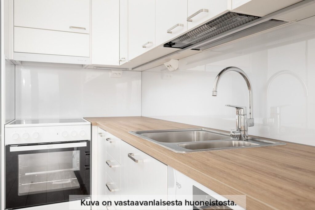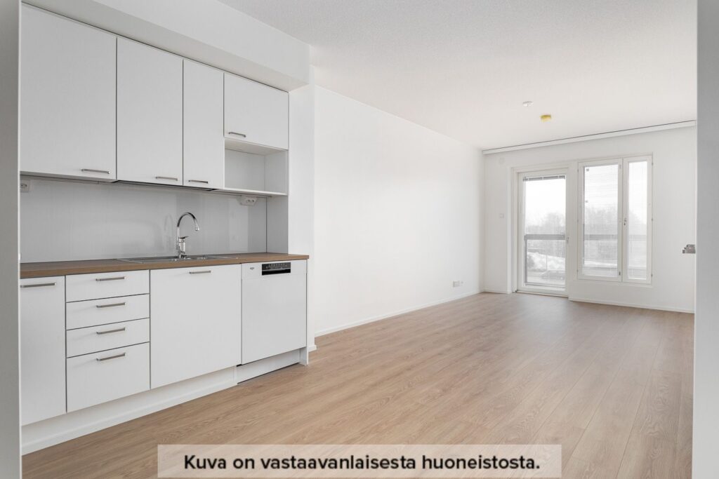 Neljännen kerroksen käytännöllinen kaksio, jossa fiksu pohjaratkaisu tekee asumisesta sujuvaa! Asunnossa on yhdistetty keittiö ja olohuone. Vaatehuone tuo runsaasti säilytystilaa, ja iso lasitettu itäparveke tarjoaa mukavan lisätilan vaikkapa aamukahville tai vilvoitteluun. Lattiamateriaalina on miellyttävä laminaatti ja ikkunoissa sälekaihtimet. Keittiössä on keraaminen liesi, jääkaappipakastin, 60cm astianpesukone sekä tilavaraus mikroaaltouunille.