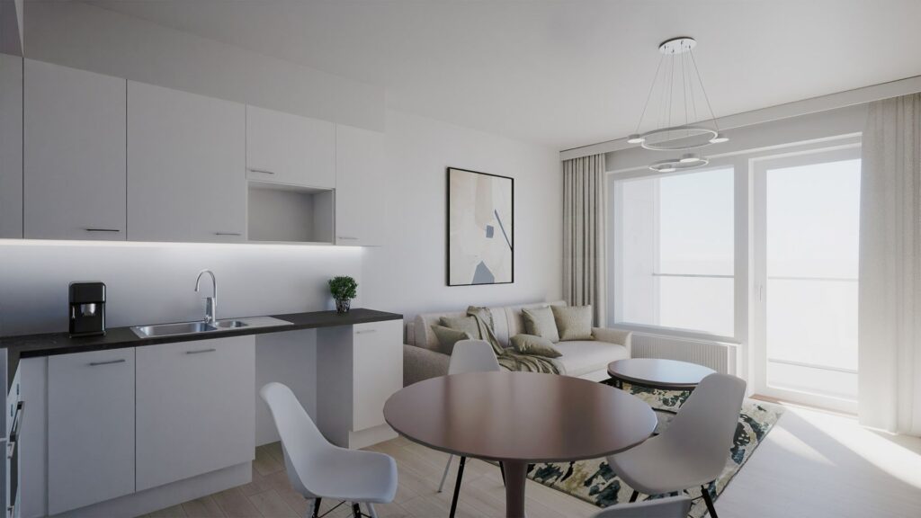 Raision Ihalassa yhdistyvät luonnonläheisyys, rauha ja sujuva arki – ja juuri sinne rakentuu uusi, moderni kerrostalokoti, joka valmistuu lokakuussa 2026. Tämä maantasokerroksen kaksio tarjoaa helppoa asumista nykyaikaisessa ympäristössä. Avara olohuone ja keittiö muodostavat kodin sydämen, josta on käynti omalle puuterassille – täydellinen paikka nauttia aamukahvista tai ilta-auringosta. Makuuhuoneen yhteydessä on kätevä vaatehuone, ja kylpyhuone on moderni ja tyylikäs.