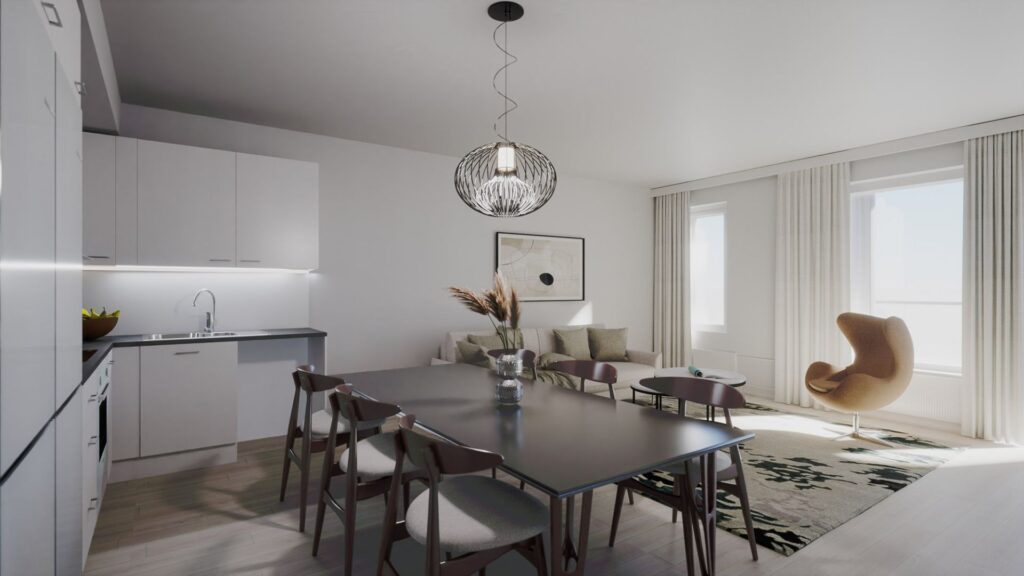 Raision Ihalaan rakentuu uusi moderni kerrostalokohde, jonka neljän huoneen ja keittiön asunto tarjoaa laadukasta asumista rauhallisessa, luonnonläheisessä ympäristössä. Tämä 74,5 neliömetrin asunto valmistuu lokakuussa 2026 ja sijaitsee yhtiön toisessa kerroksessa. Kodin tilaratkaisut on suunniteltu huolella, jotta asuminen olisi sekä toimivaa että viihtyisää. Avara olohuone ja avokeittiö muodostavat yhtenäisen oleskelualueen. Kolme makuuhuonetta tarjoavat riittävästi tilaa niin perheelle kuin etätyöskentelyllekin, ja suurelta lasitetulta parvekkeelta avautuu rauhallinen näkymä ympäröivään viherympäristöön.
