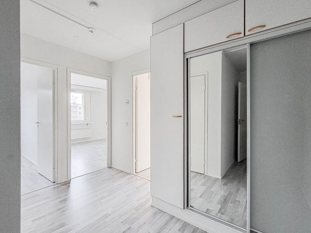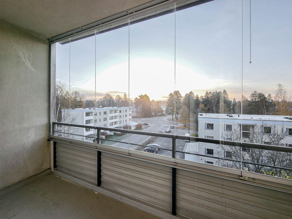 Tarjolla hissitalon ylimmän kerroksen viihtyisä ja valoisa kaksio. Tilavasta olohuoneesta on käynti lasitetulle, koko huoneiston levyiselle parvekkeelle. Asunnossa on runsaasti kaappitilaa niin keittiössä kuin makuuhuoneessakin. Lisää säilytystilaa löytyy erillisestä irtainvarastosta. Asukkaiden käytettävissä on ilmainen pesutupa.