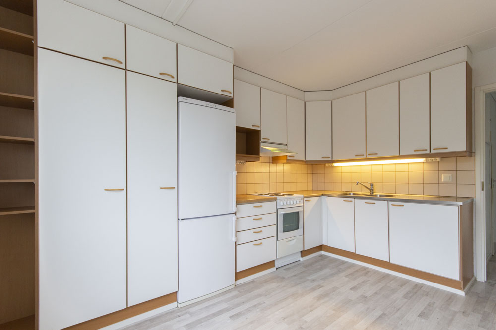 Ylimmän kerroksen tilava ja valoisa läpitalon huoneisto. Olohuoneesta on käynti lasitetulle länsiparvekkeelle. Keittiössä on runsaasti kaappitilaa ja paikka isollekin ruokapöydälle. Säilytystilaa löytyy eteisen ja makuuhuoneiden kaapistojen lisäksi irtainvarastosta. Asukkaiden käytössä on ilmainen pesutupa.