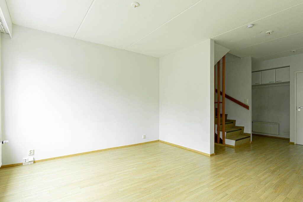 Tilava rivitalon päätykolmio. Asunnossa toimiva keittiö ja tilava ruokailutila, joka avautuu luontevasti valoisaan olohuoneeseen. Makuuhuoneet sijaitsevat yläkerrassa ja niistä löytyy runsaasti säilytystilaa. Asumismukavuutta lisäävät myös kaksi erillistä wc:tä, tilava vaatehuone ja oma suojattu terassi. Huoneistokohtainen irtainvarasto sijaitsee aivan ulko-oven vieressä.