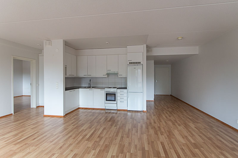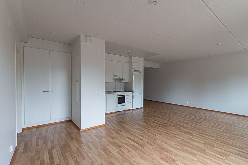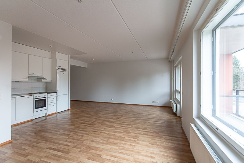 Tämä valoisa ja avara pohjakerroksen kaksio hurmaa käytännöllisellä pohjaratkaisullaan ja modernilla ilmeellään. Kodin sydän on tilava olohuone, joka yhdistyy sulavasti keittiöön ja ruokailutilaan, tarjoten paljon tilaa arkeen ja yhdessäoloon. Suuret ikkunat tuovat runsaasti luonnonvaloa, ja asunnon parveke tarjoaa mukavan ulkotilan esimerkiksi aamukahvihetkiin.