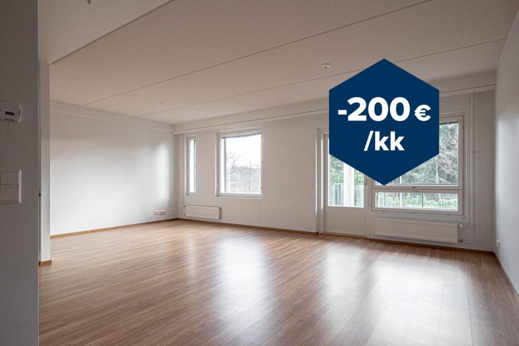 Kampanjaetu! 200 € alennus vuokrasta vuoden 2026 loppuun saakka. Edun edellytys on, että vuokrasopimuksen vähimmäiskesto on 6 kk. Sopimus alkaa asuntotarjouksen mukaisesti.